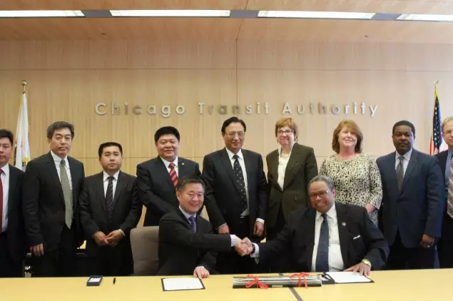 美國當(dāng)?shù)貢r間2016年4月15日,中國中車與芝加哥交通管理局(CTA)在美國芝加哥就856輛地鐵車輛項目舉行了簽約儀式。中國中車集團公司、股份公司董事長崔殿國與中國中車股份公司副總裁余衛(wèi)平見證了簽約儀式。具體負責(zé)該項目的中國中車四方股份公司總經(jīng)理馬云雙與芝加哥交通管理局總裁卡特在項目上簽字。美國當(dāng)?shù)貢r間2016年4月15日,中國中車與芝加哥交通管理局(CTA)在美國芝加哥就856輛地鐵車輛項目舉行了簽約儀式。中國中車集團公司、股份公司董事長崔殿國與中國中車股份公司副總裁余衛(wèi)平見證了簽約儀式。具體負責(zé)該項目的中國中車四方股份公司總經(jīng)理馬云雙與芝加哥交通管理局總裁卡特在項目上簽字。